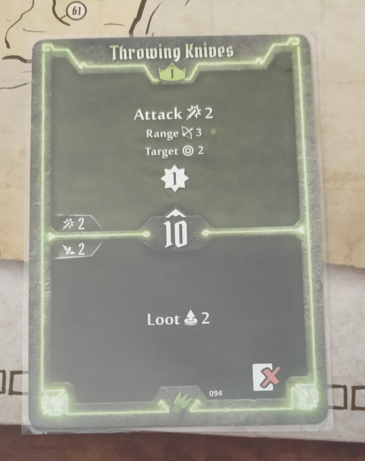 Mientras que otras clases tienen un mazo relativamente fijo y bien definido, la Scoundrel es de las que más cartas cambia entre escenarios. Mira tus cartas, la mitad de ellas tienen alguna condición que cumplir para ser verdaderamente útiles.